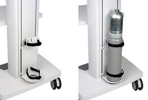 Mit Hilfe der Spezial-Halterungen für Gasflaschen (2 l oder 10 l) kann der ergocar zum vollwertigen Ergo-SpirometrieArbeitsplatz ausgebaut werden.