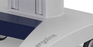 Beim Einsatz des ergocar-Gerätewagens mit einem klassischen EKG-Schreiber wird das beschriebene EKG-Papier (DIN A4 oder DIN A5 quer, Z-gefaltet) zuverlässig von speziell konstruierten Ablagen aufgefangen.