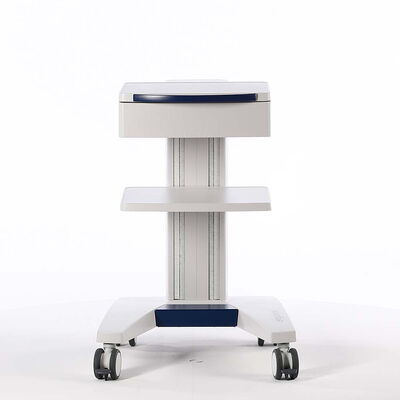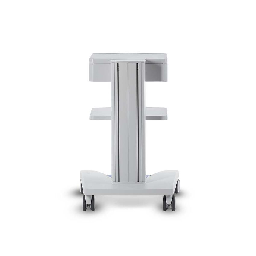 Fußgestell, Tragsäule und Ablageböden werden aus Aluminium gefertigt und mit einer hochwertigen, hygienischen und kratzfesten Pulverbeschichtung versehen. Die aufwändige Konstruktion bietet eine hohe Gesamtbelastbarkeit von 80 kg trotz eines geringen Eigengewichtes.