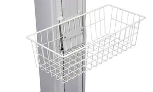 Ablagekörbe in verschiedenen Größen können auf beiden Seiten der Tragsäule oder seitlich an Ablageböden und Schubladen angebracht werden.