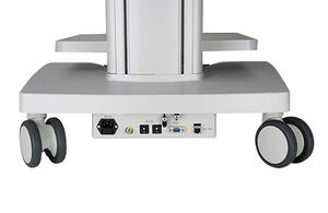 Medizinische Trenntransformatoren zur Reduktion der Ableitströme sind in verschiedenen Leistungen (4 A, 5 A, 6 A) erhältlich und werden platzsparend in der Gerätewagenbasis untergebracht. Zusätzlich können Verlängerungen für RS232, USB und LAN vom Datenkabel-Kanal zur Rückseite des Trenntransformator-Gehäuses geführt werden.