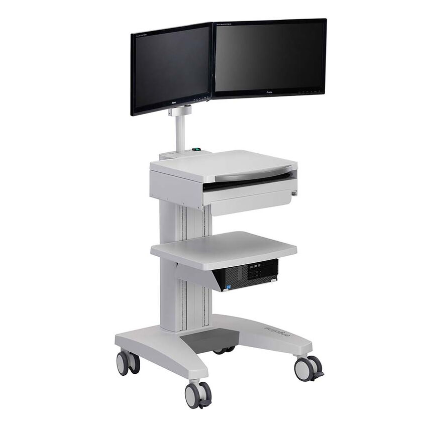 Die PC-Halterung ermöglicht die Anbringung eines PC mit sogenanntem SFF-Gehäuse (small form factor) direkt unterhalb eines Ablagebodens. Für größere Rechner (Desktop-Gehäuse) ist eine Halterung an der Außenseite der Zentralsäule erhältlich (siehe Optionen/Zubehör).