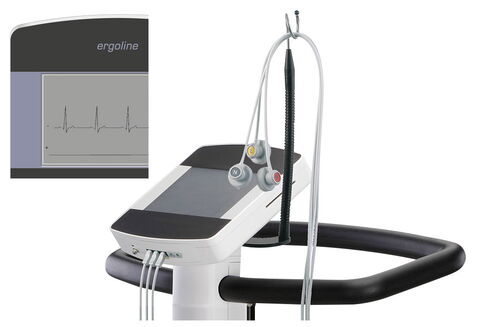 For ECG acquisition with wired electrodes, the ergoline rehabilitation ergometers can be equipped with an integrated ECG amplifier.