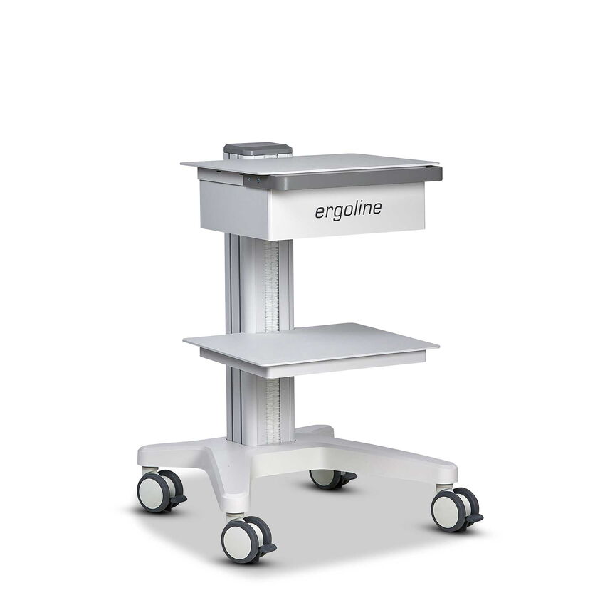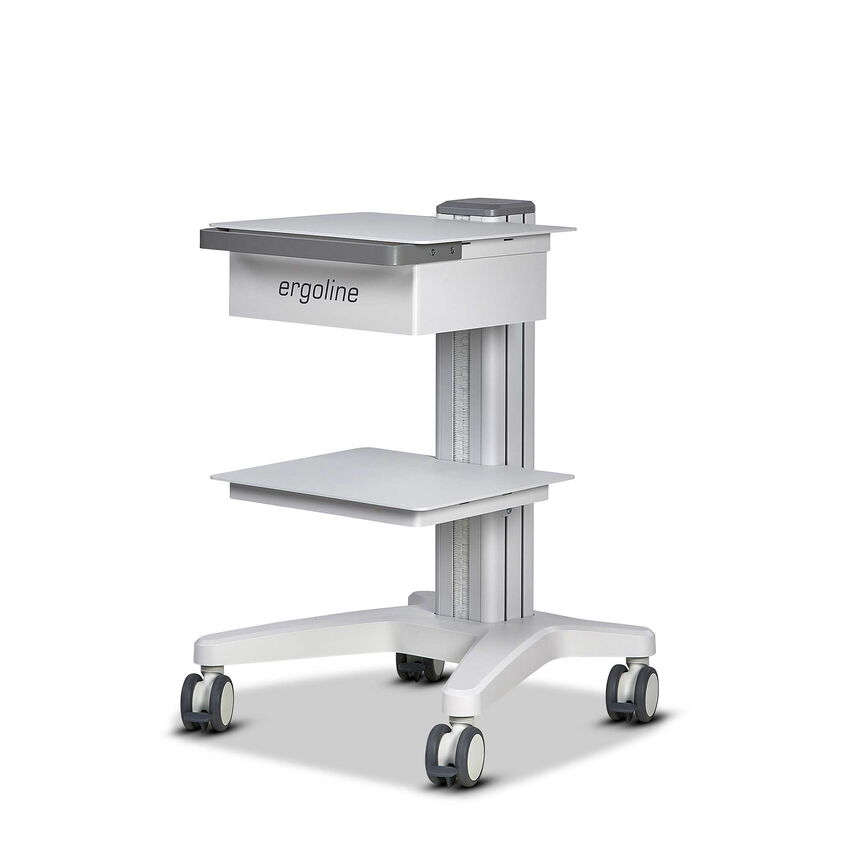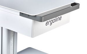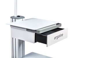 All drawers of the ergocar series are equipped with a soft self-closing mechanism. A variant with a cable outlet above the front panel is available for applications with wired probes (e.g., CTG) – this prevents crushing the probe cable when closing the drawer.