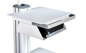The PC bracket allows for attaching a PC with a so-called SFF (small form factor) housing directly underneath a shelf. A bracket for mounting on the outside of the central column is available for larger computers (desktop housing) (see Options/Accessories).
